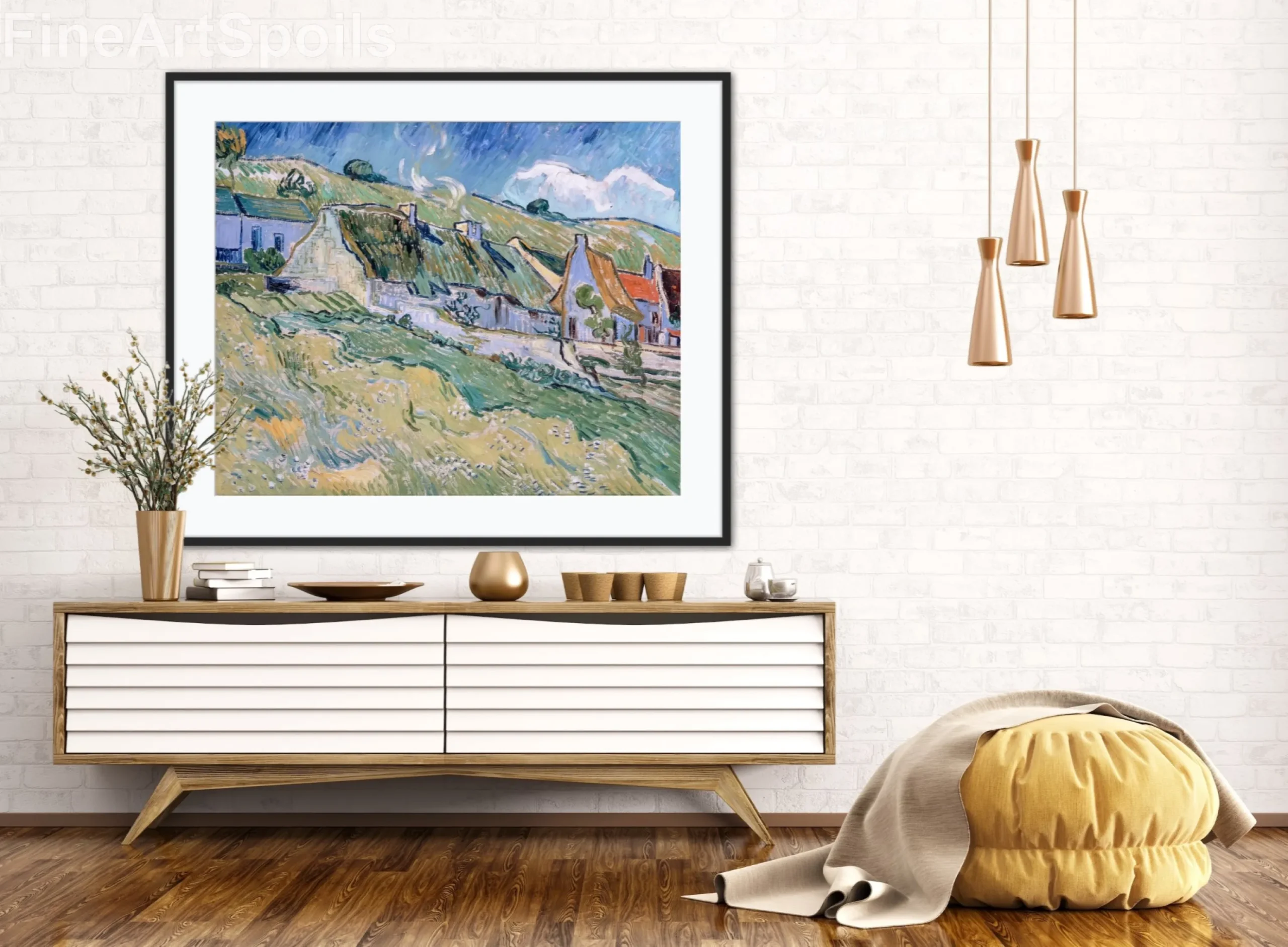 Bring a piece of art history into your home with this stunning reproduction of “Cottages at Auvers-sur-Oise,” painted by Vincent van Gogh in May 1890. This work was created during the final, incredibly prolific months of the artist’s life in the small village of Auvers, just north of Paris.