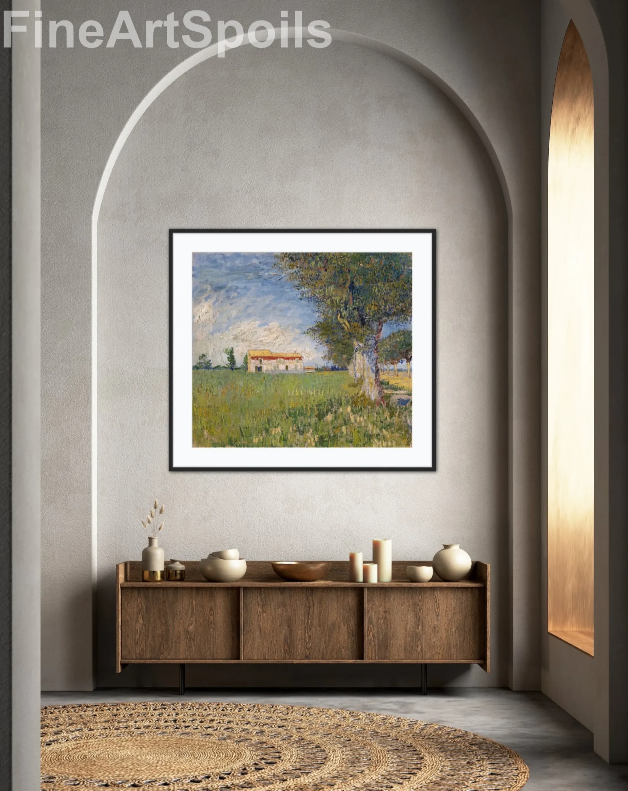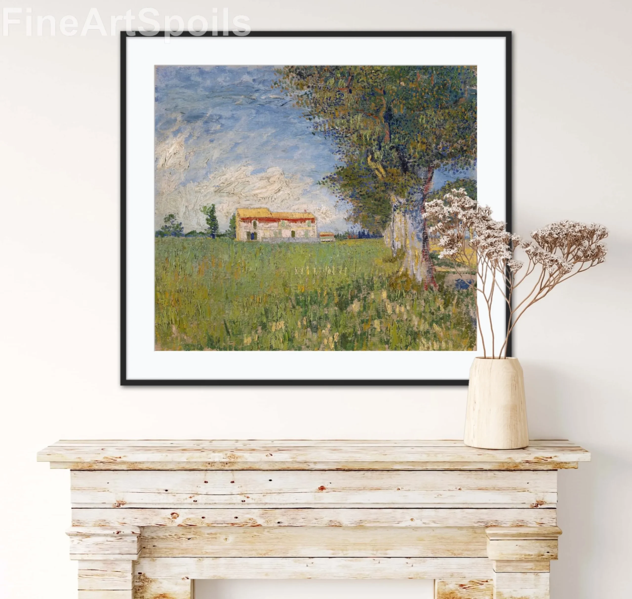 Bring the vibrant energy of the South of France into your home with this stunning reproduction of Vincent van Gogh’s Farmhouse in a Wheat Field. Painted during his prolific period in Arles in 1888, this work captures the rustic beauty of a Provencal summer.