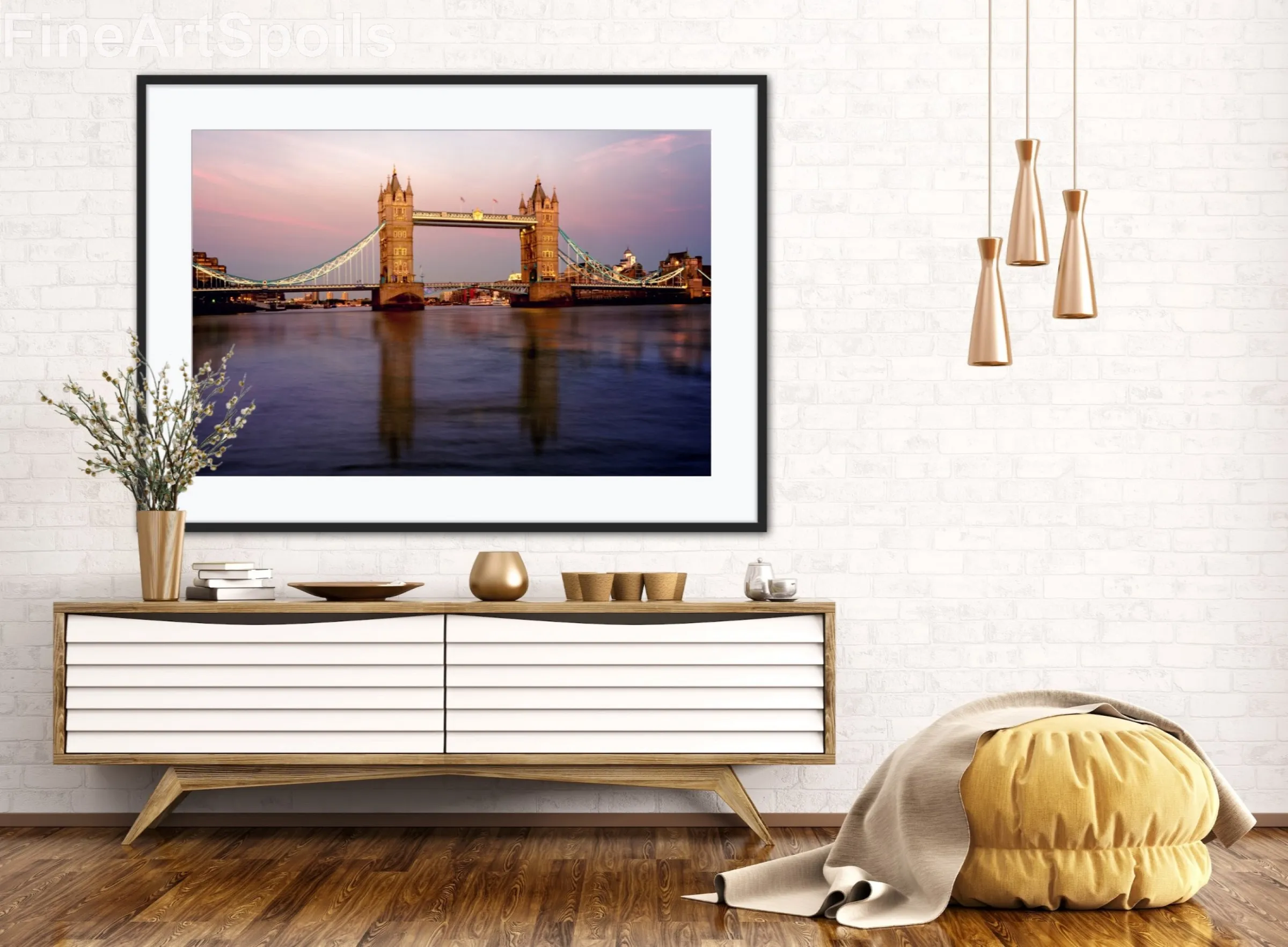The calm waters of the River Thames create a glassy reflection, mirroring the bridge’s illuminated towers and suspension cables. This piece captures a moment of serene beauty in the heart of a bustling metropolis, making it an ideal centerpiece for any modern home or office. Printed with archival-quality inks, this photograph preserves every intricate detail and subtle gradient of the evening light.