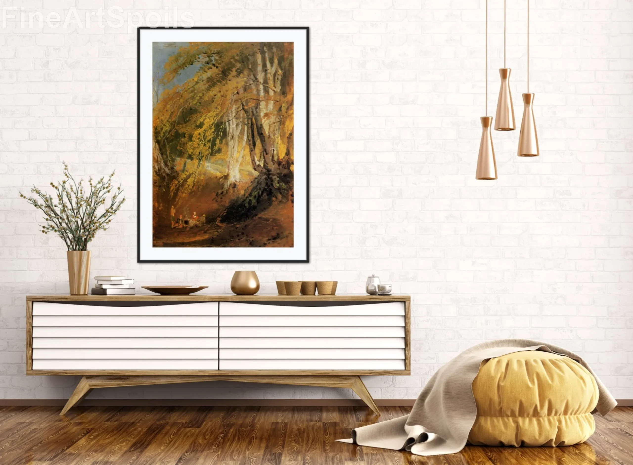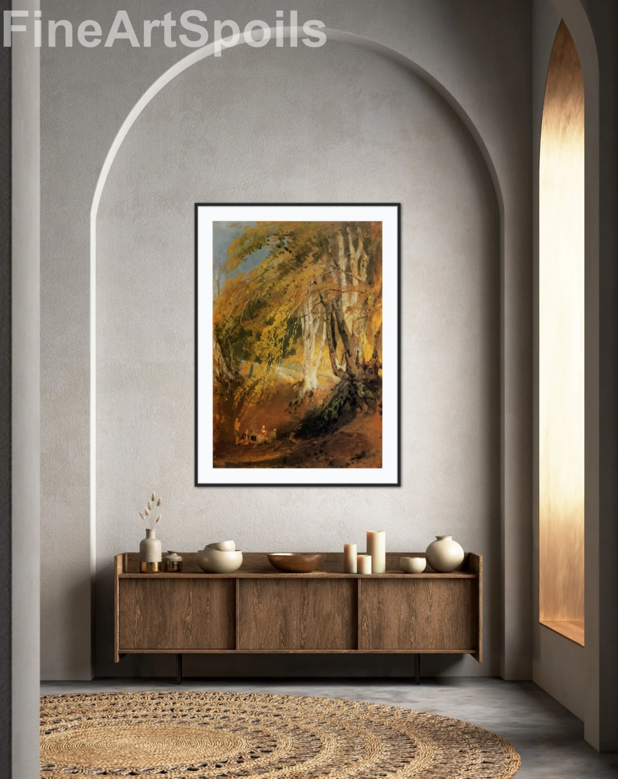 Bring the warmth and mystery of the late 18th century into your home with this exquisite fine art reproduction. Featuring a glowing campfire nestled beneath the towering, golden canopy of a beech forest, this piece captures a moment of quiet camaraderie in nature. Printed on premium materials with archival inks, it offers rich textures and atmospheric depth perfect for any traditional or rustic interior.