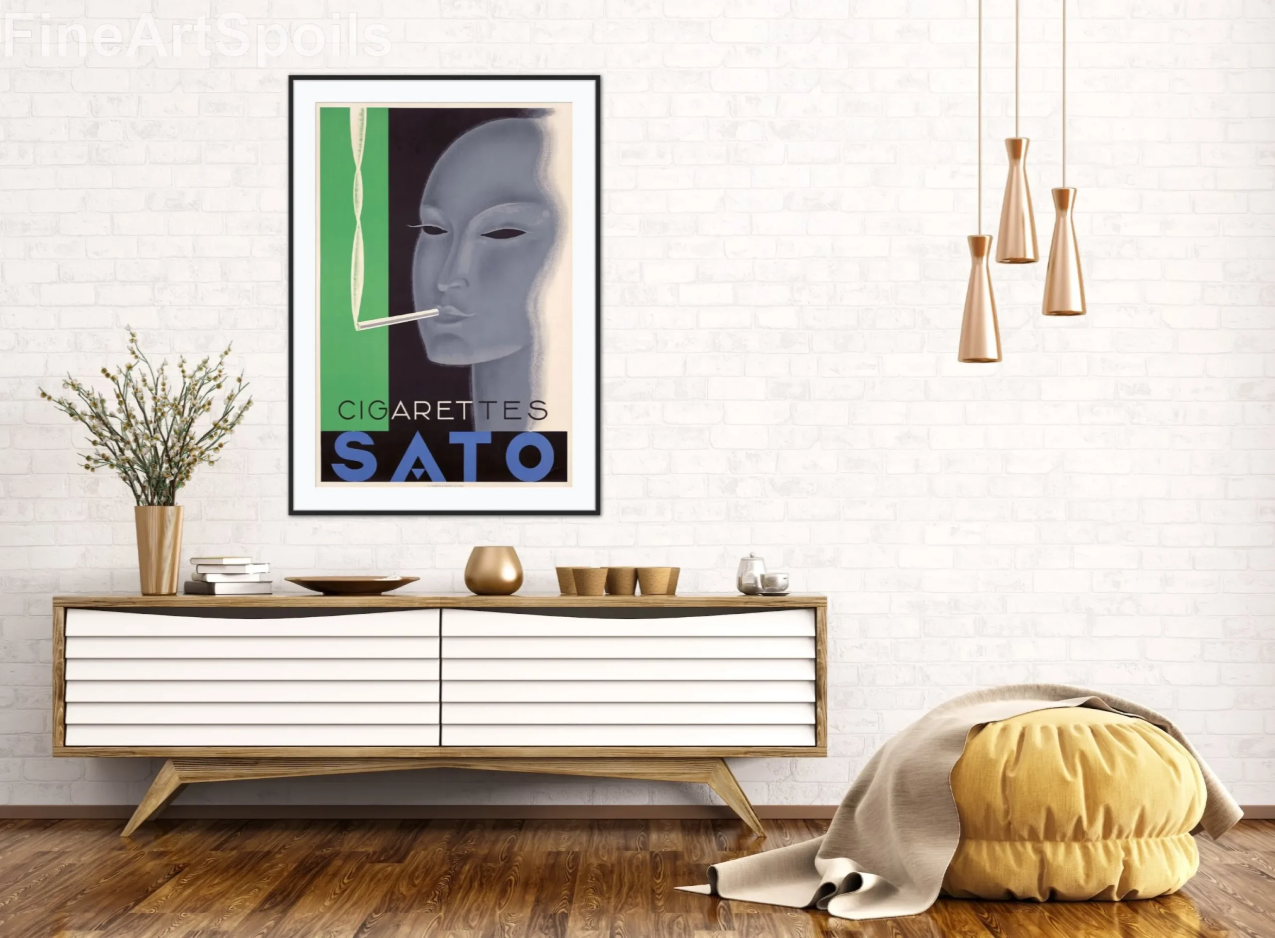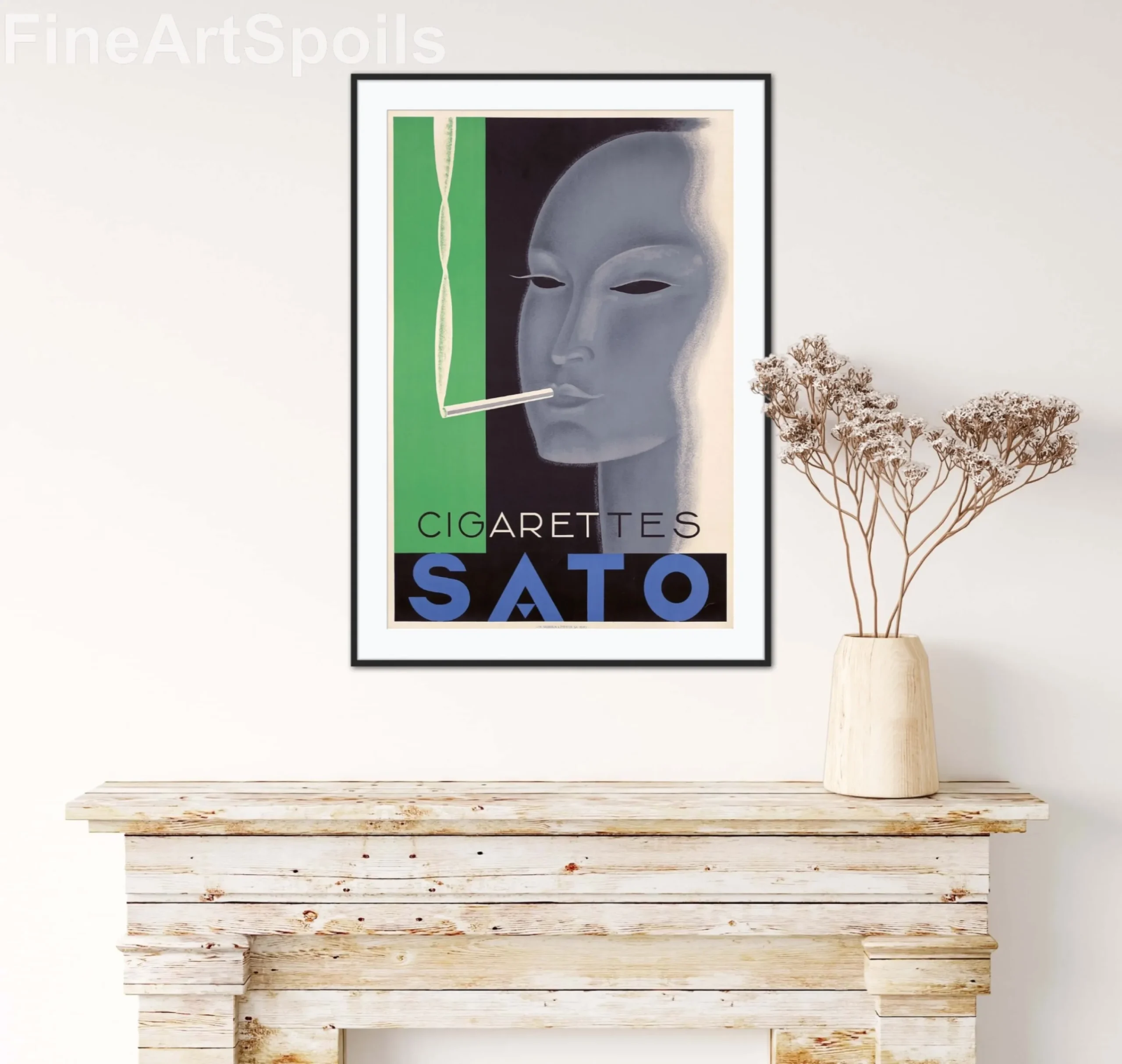 Home Shop Vertical Cigarettes Sato Vintage Art Deco Poster (1933) by Leonetto Cappiello