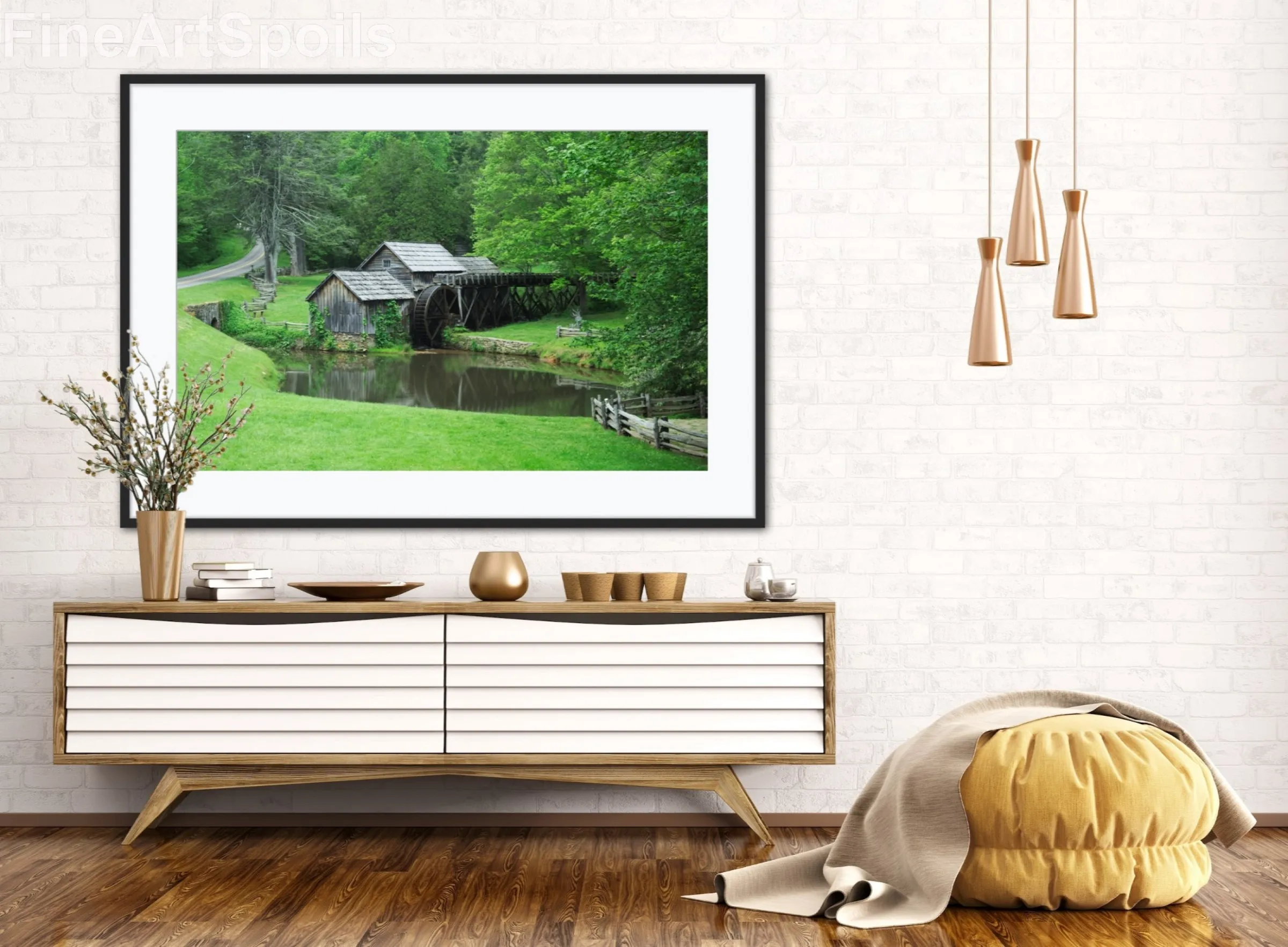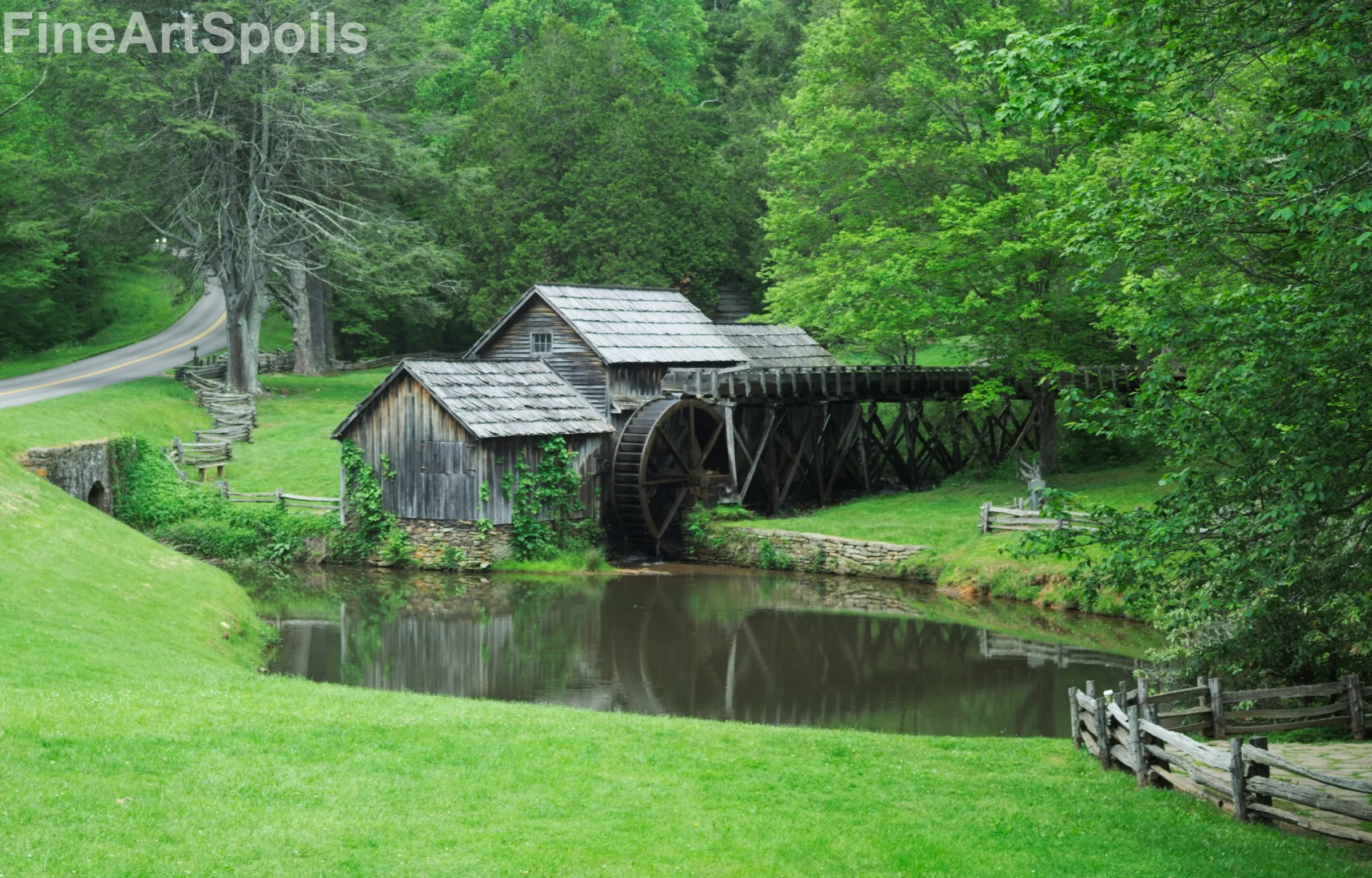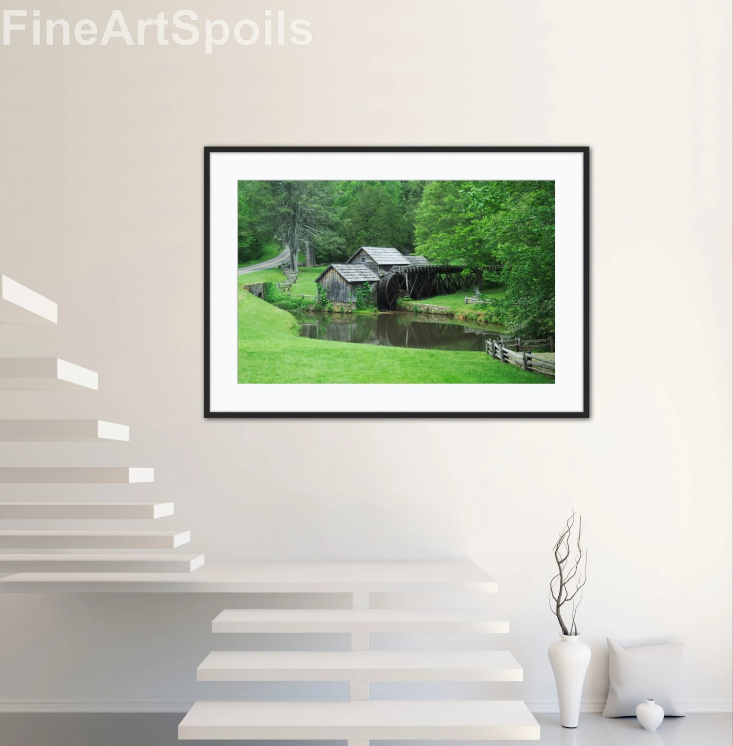 Home Shop Horizontal Rustic Mountain Watermill – Fine Art Print