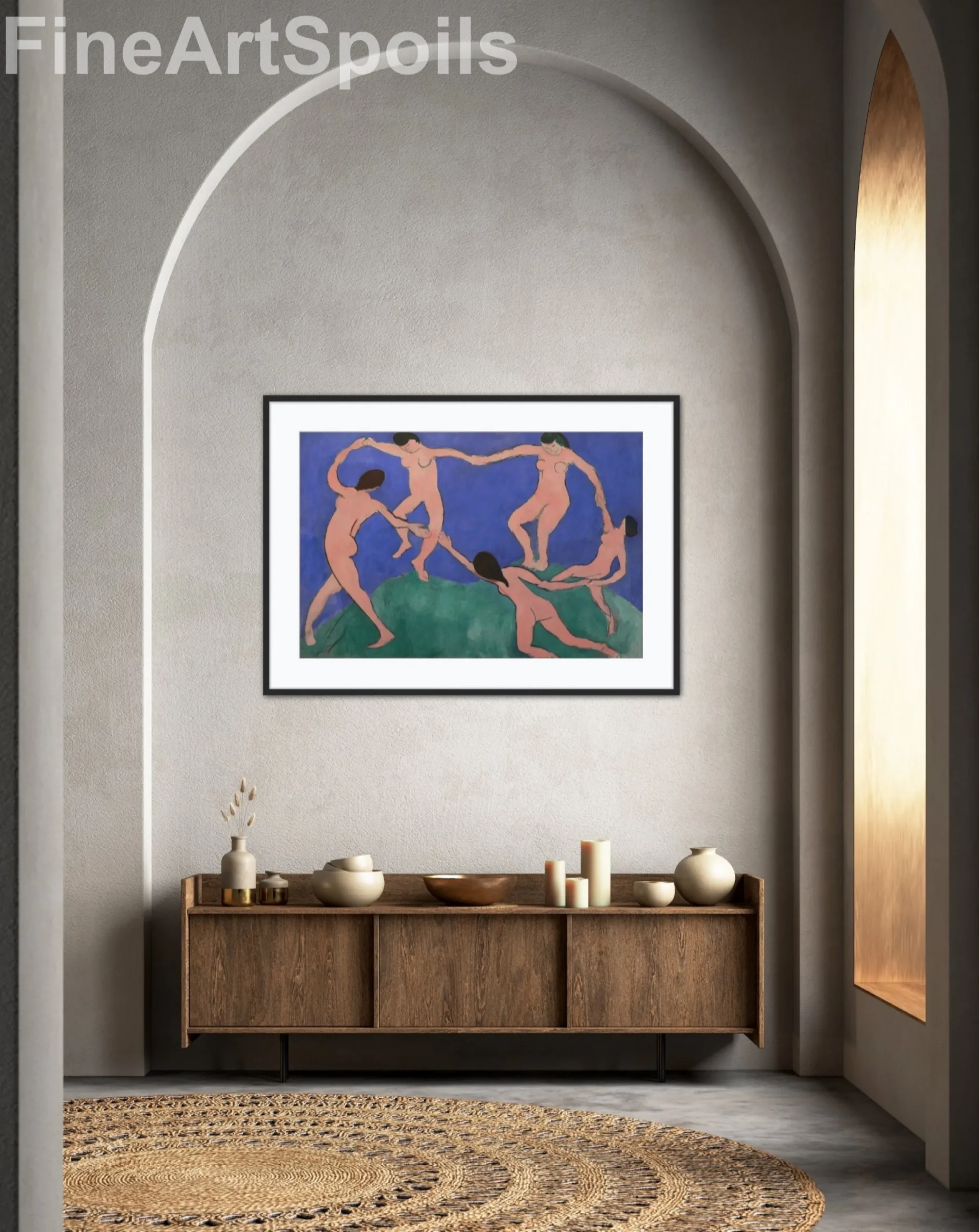 Bring the rhythmic energy of Fauvism into your home with this high-quality reproduction of Henri Matisse’s The Dance I (1909). Featuring five figures in a primitive, circular dance against a vibrant blue and green landscape, this piece captures the essence of liberation and movement. Printed on premium archival materials, this reproduction preserves the bold, flat colors and fluid lines that made Matisse a pioneer of modern art. Perfect for living spaces or studios looking for a touch of historical elegance and vitality.